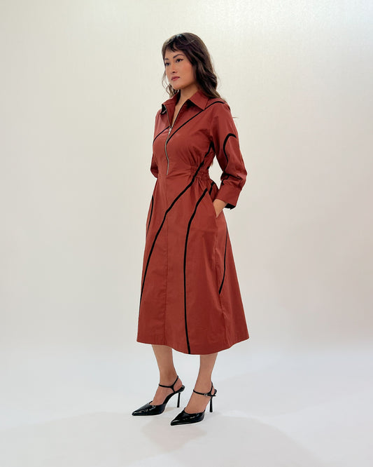 Hand-stitching carries forward generations of accumulated technique, each seam is an evidence of knowledge learned through centuries, continuously refined, still evolving. Cotton poplin becomes the foundation for construction that honors both tradition and contemporary production values. Lustrous taffeta. Fluid crepe learns the wearer's body, molding itself with each wearing, becoming more intimate rather than deteriorating through seasons.