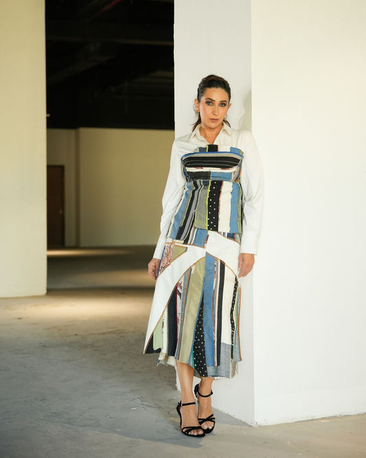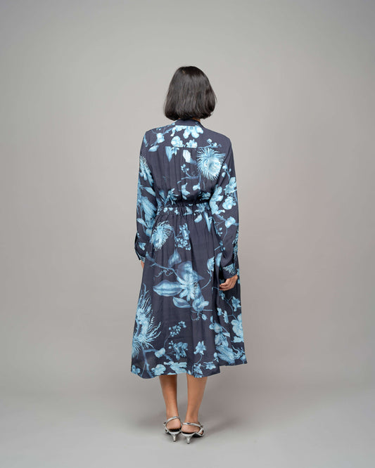 Garden Print High Low Shirt Dress In Aurora Borealis
