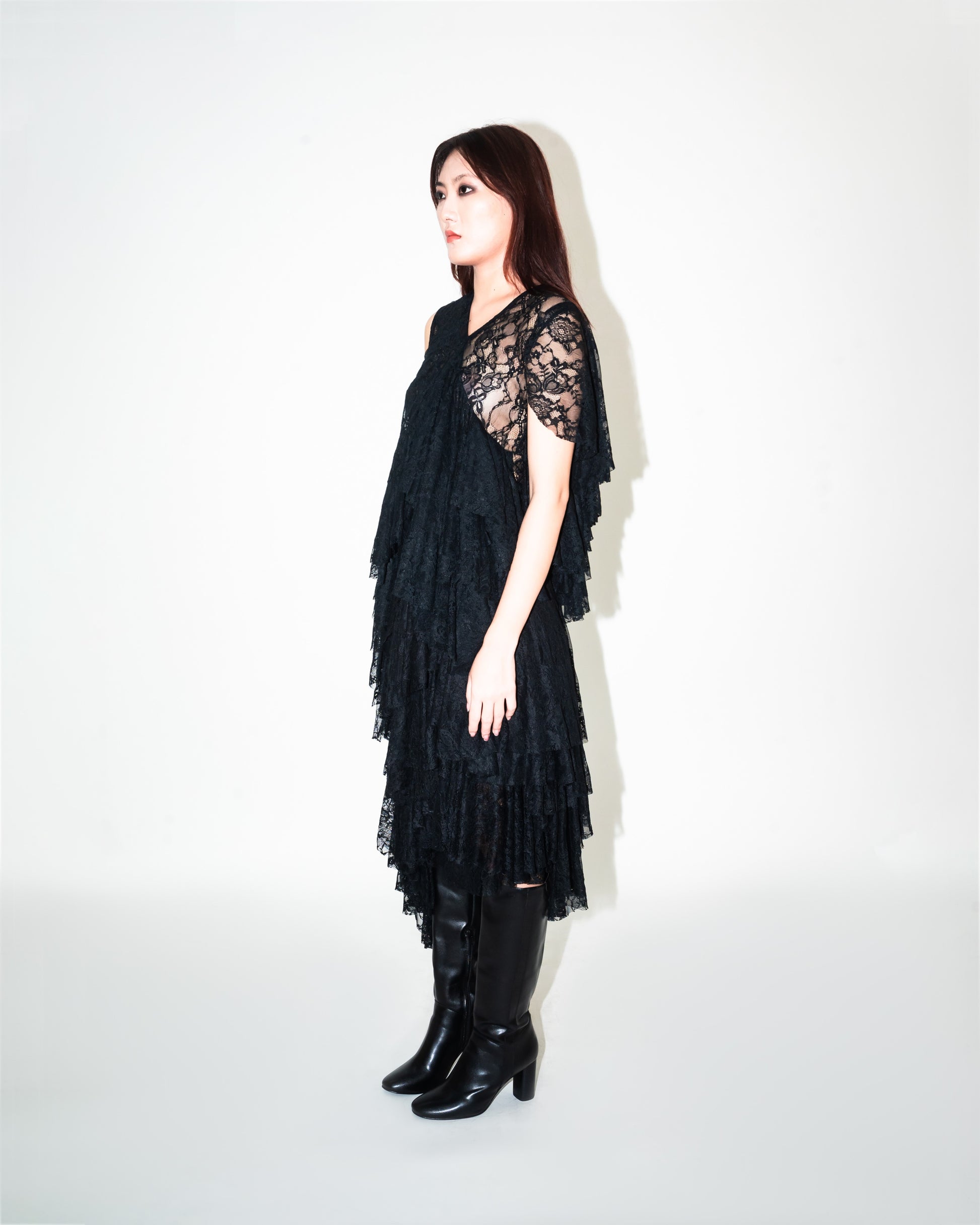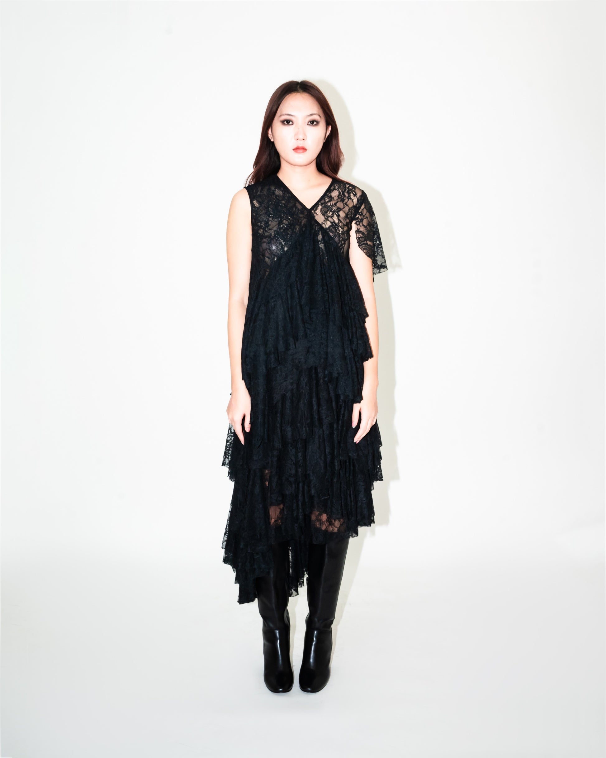 Crafted from Stretch lace, this sleeveless layered top has a relaxed but flattering cut. Design details include a V neckline finished with asymmetric hemline. Model height is 5.8" Model wear size S garment length is 20"