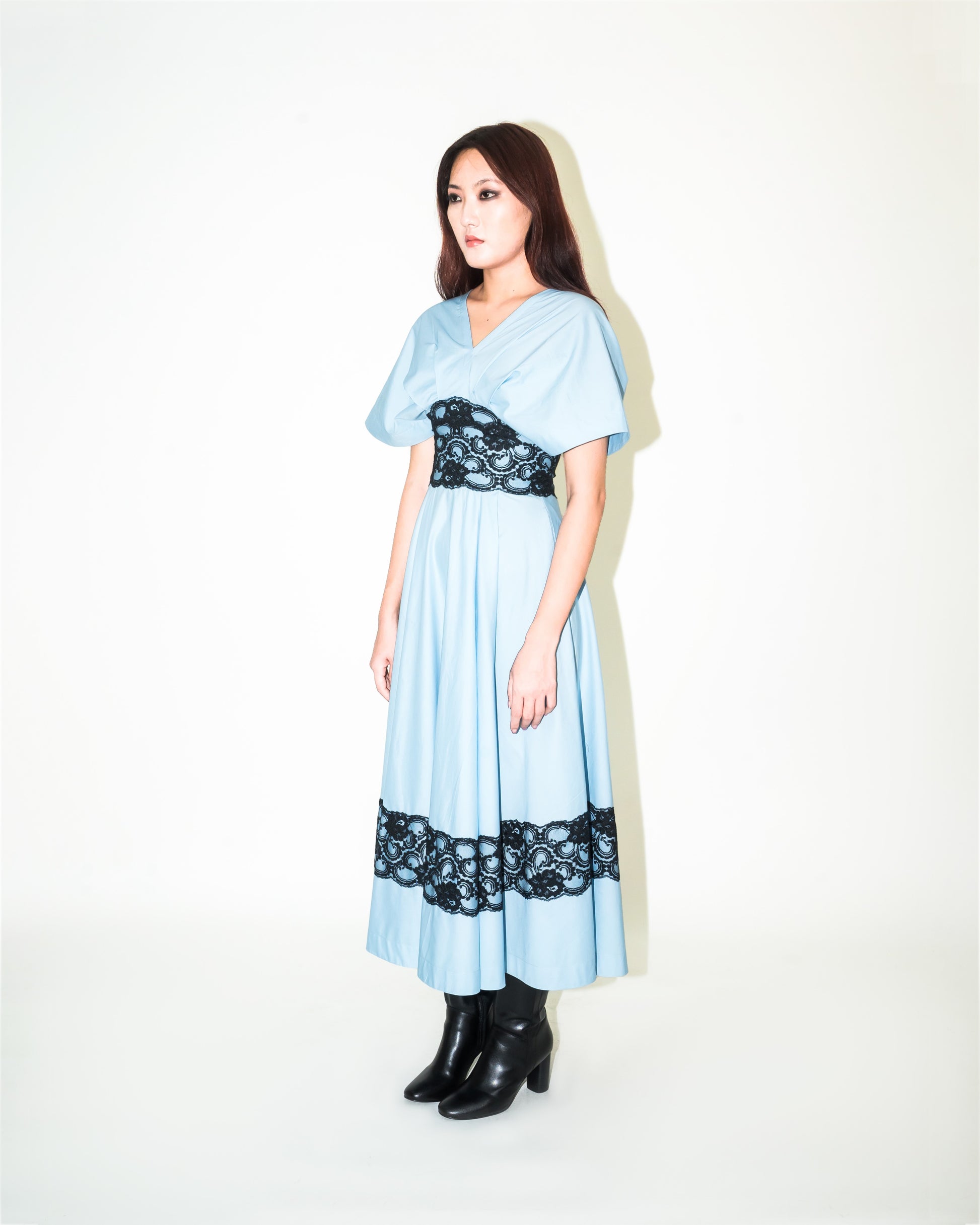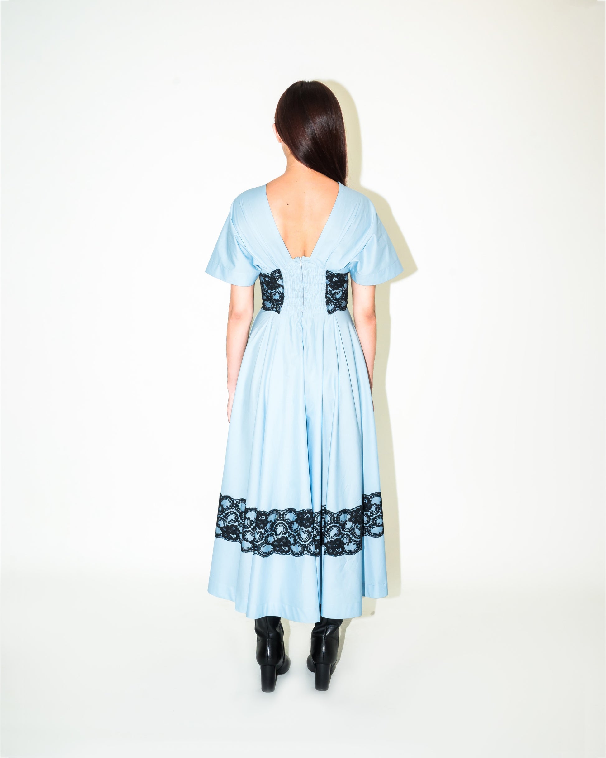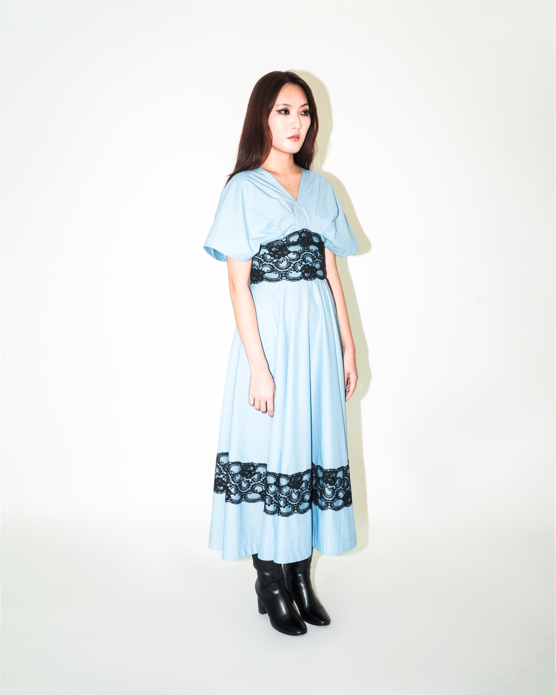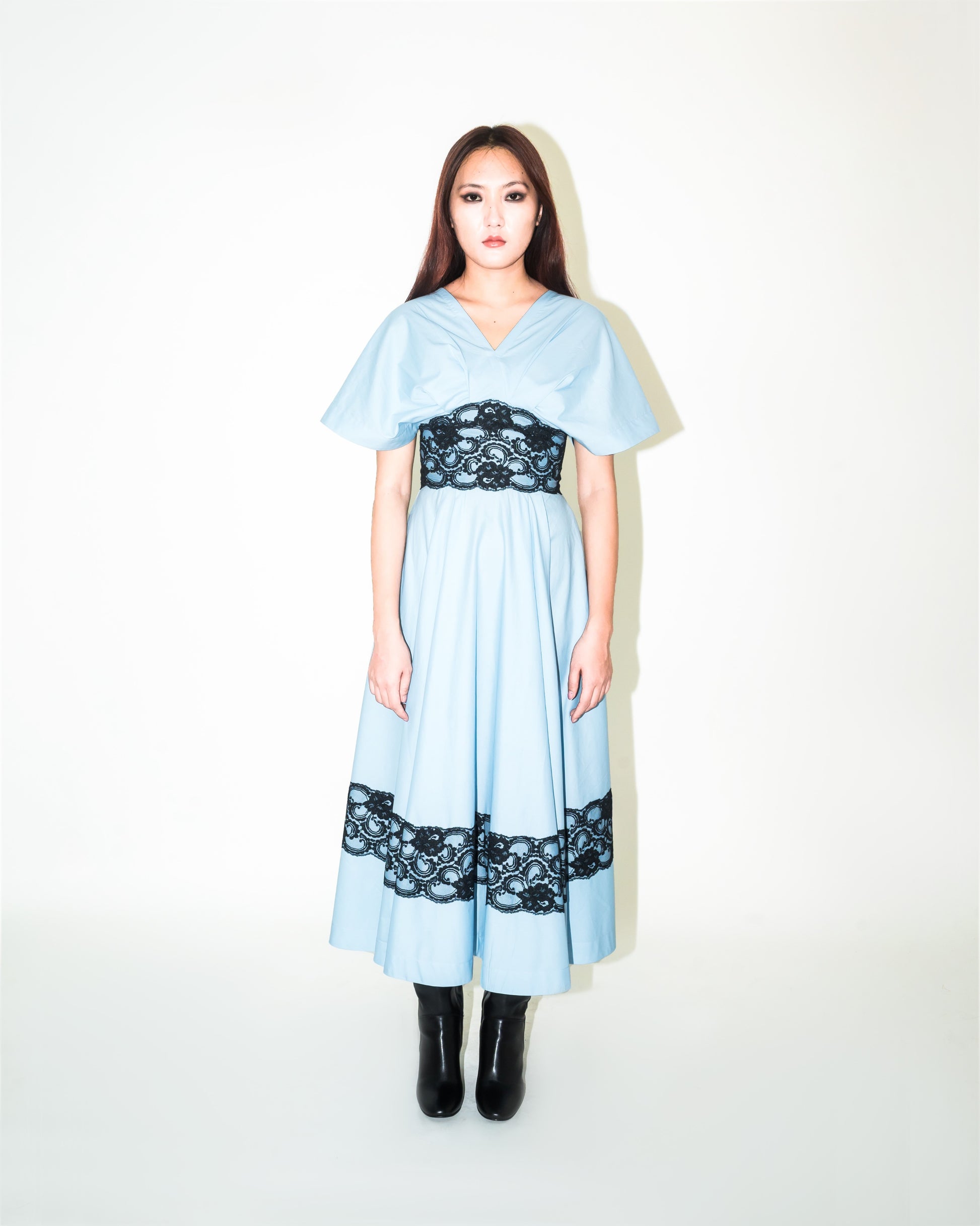 Pleated bodice with extended sleeves and fitted at waist with back elastic for comfort this lace detailed dress is made of 100% cotton fabric with a circular cut bottom. Model height is 5.8" Model wear size S garment length is 51"