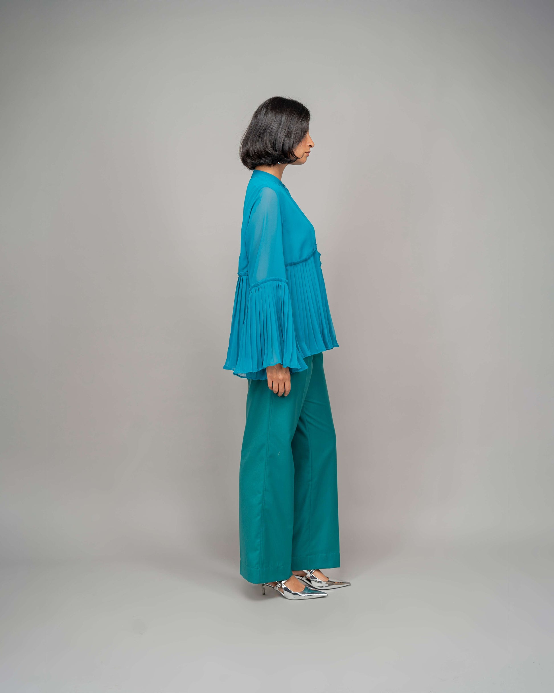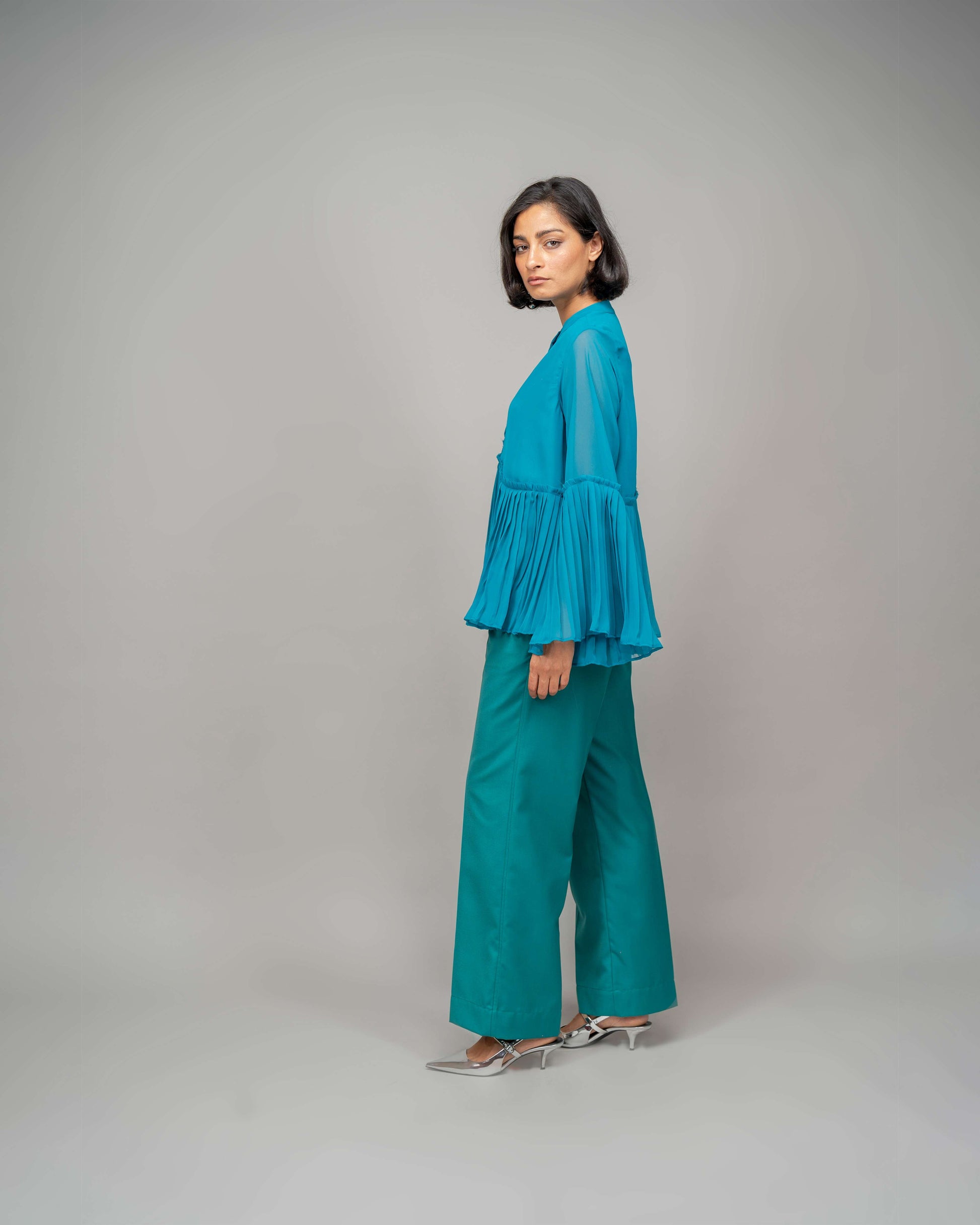 This trouser is cut in 100% Rayon Suiting, featuring a straight silhouette elongating the limbs. Model wear size M model height is 5'8 garment lenght is 40''
